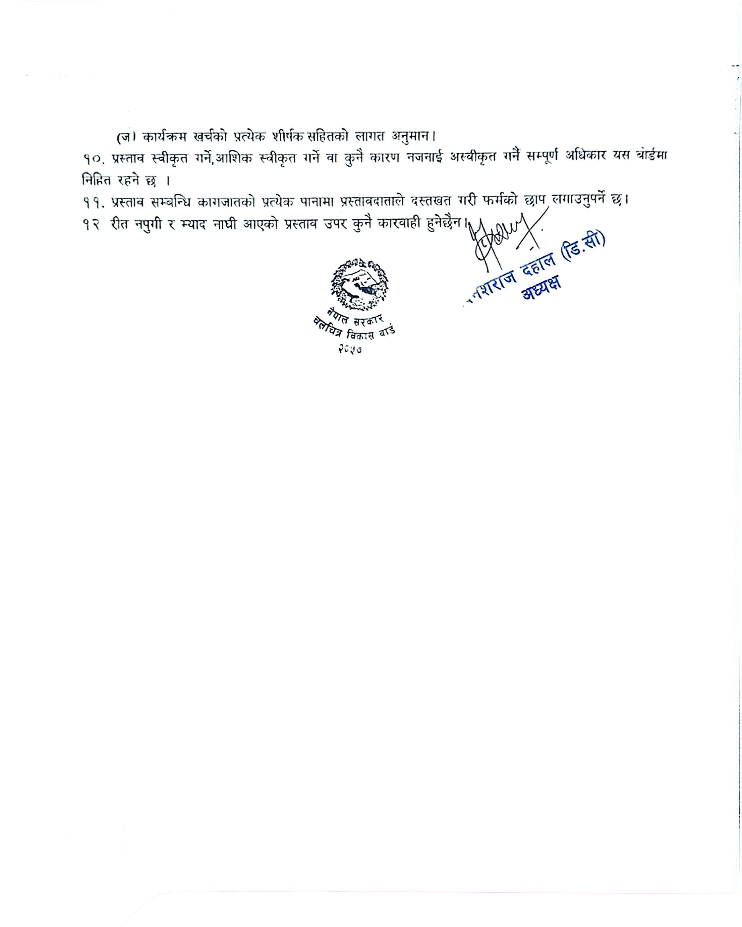 १०. प्रस्ताव स्वीकृत गर्ने,आशिक स्वीकृत गर्ने वा कुनै कारण नजनाई अस्वीकृत गर्नै सम्पूर्ण अधिकार यस बोर्डमा निहित रहने छ ।